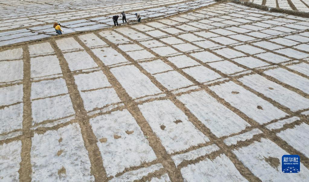 时下,甘肃省东乡族自治县农民抢抓土壤解冻、墒情地温适宜等有利时机,给土地覆膜保墒,确保春耕春播生产顺利进行。