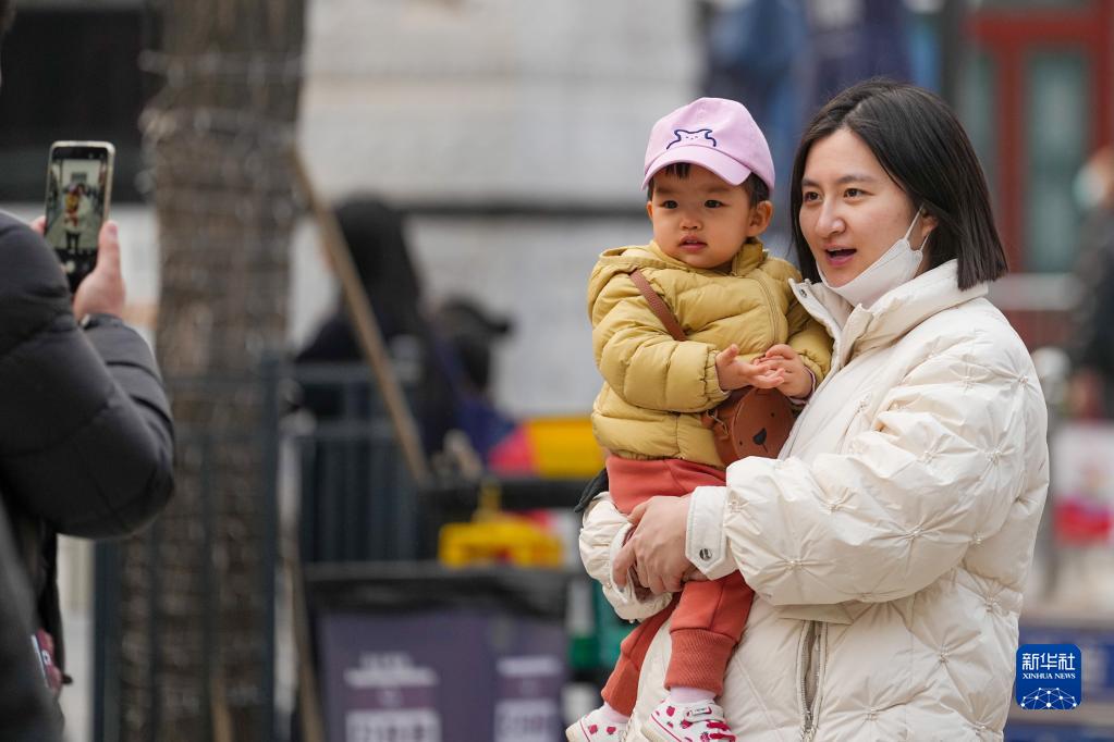 3月19日,游客在北京前门大街商圈游玩。
