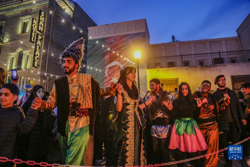 3月19日,人们在阿塞拜疆首都巴库举行庆祝活动,迎接即将到来的诺鲁孜节。