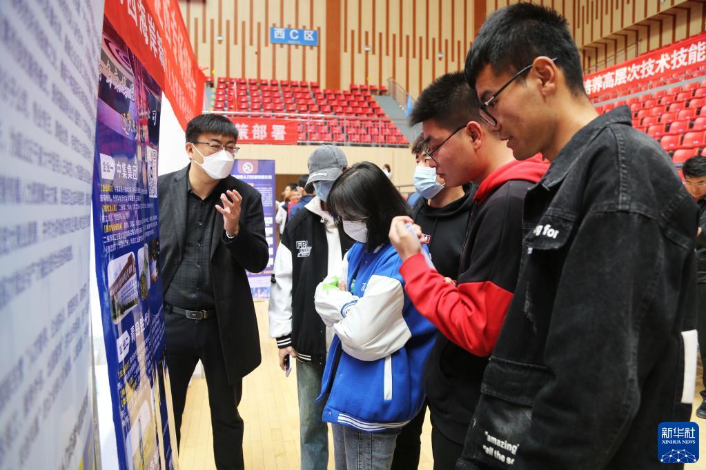 3月20日,用人单位工作人员在招聘会上向求职者介绍岗位信息。