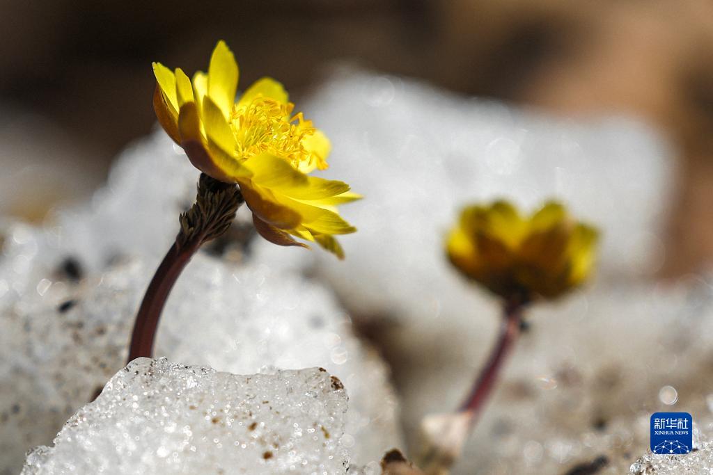 连日来,吉林省长春市气温不断回升,长春净月潭国家森林公园内的冰凌花迎春绽放。