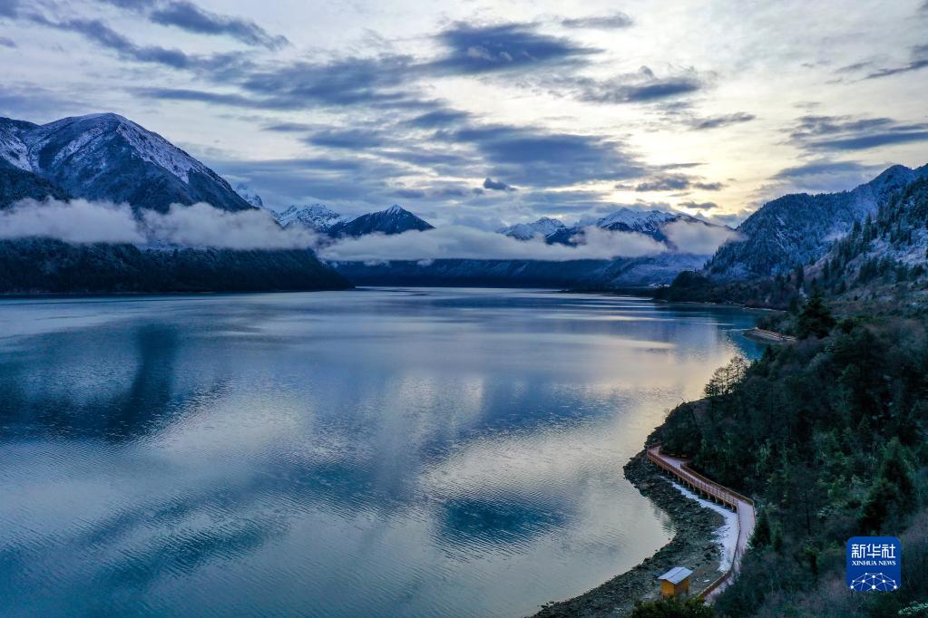 巴松湖位于西藏自治区林芝市工布江达县,清澈的湖水在雪后银色山林的掩映下格外美丽。