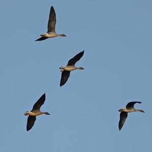 3月20日,在内蒙古自治区呼和浩特市托克托县黄河沿岸,大雁在空中飞翔。