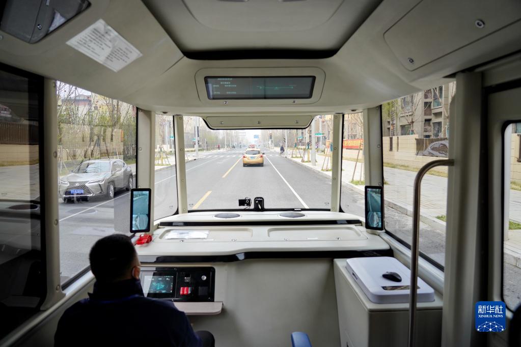 3月20日,智能网联巴士901线测试车在河北雄安新区容东片区道路上行驶。