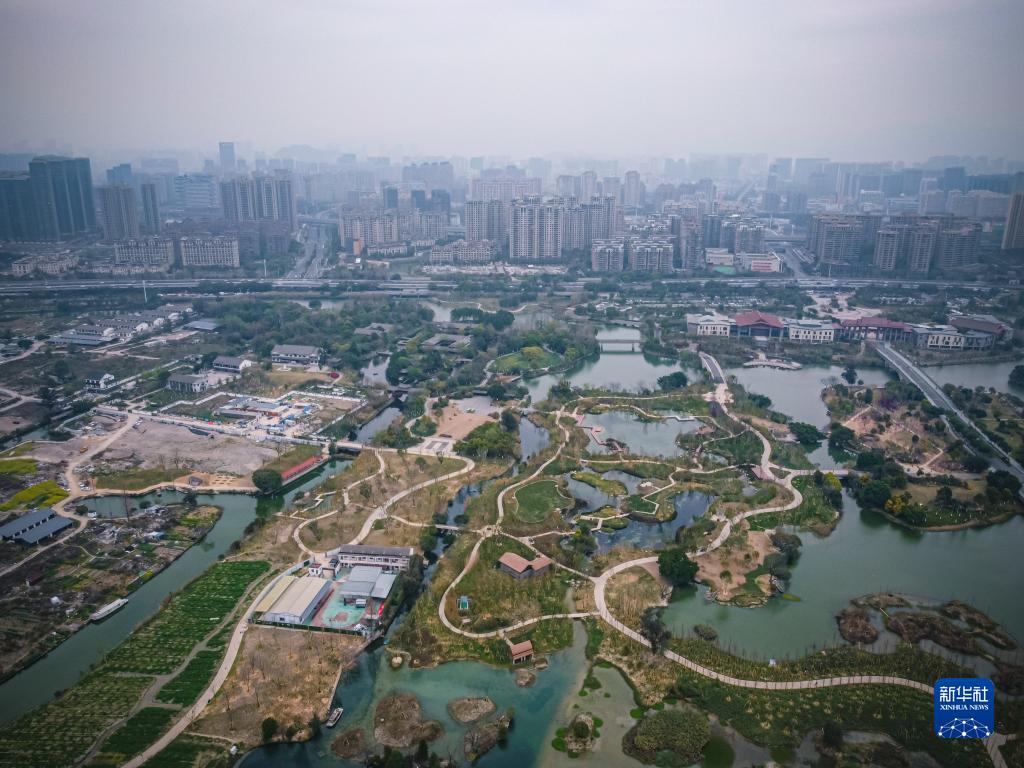 这是3月16日拍摄的浙江温州生态园三垟湿地景色(无人机照片)。
