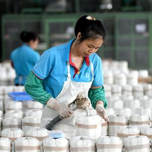 3月21日,在德化一家陶瓷企业生产车间,工人给陶瓷空心注浆。