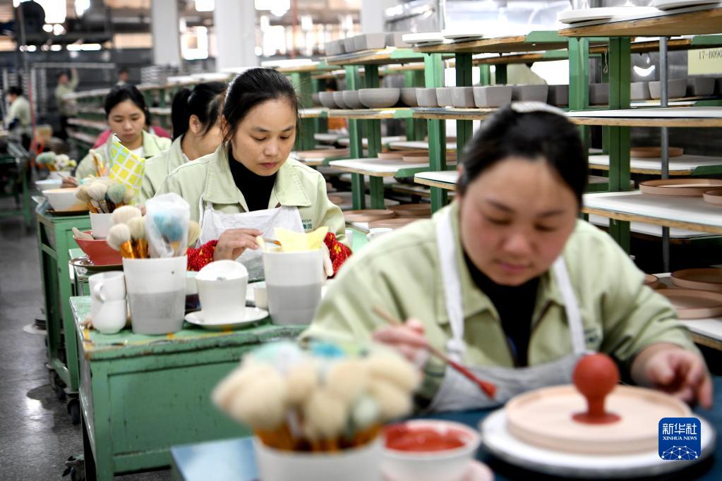 3月21日,工人在德化一家陶瓷企业生产车间忙碌。