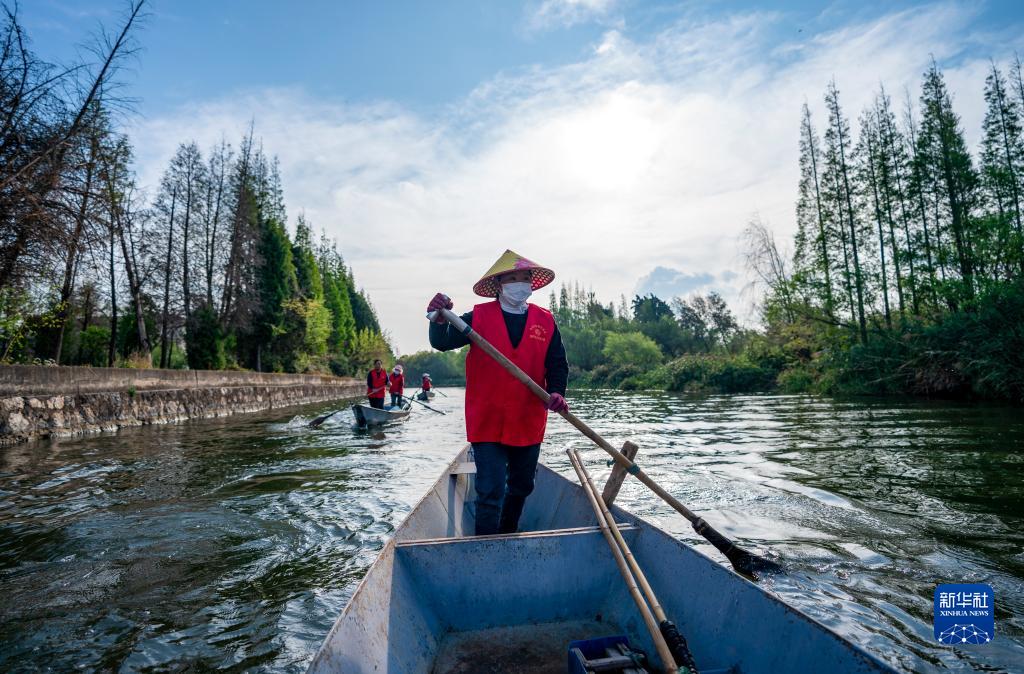 3月20日,巾帼打捞队一名队员驾船前往滇池草海开展打捞工作。