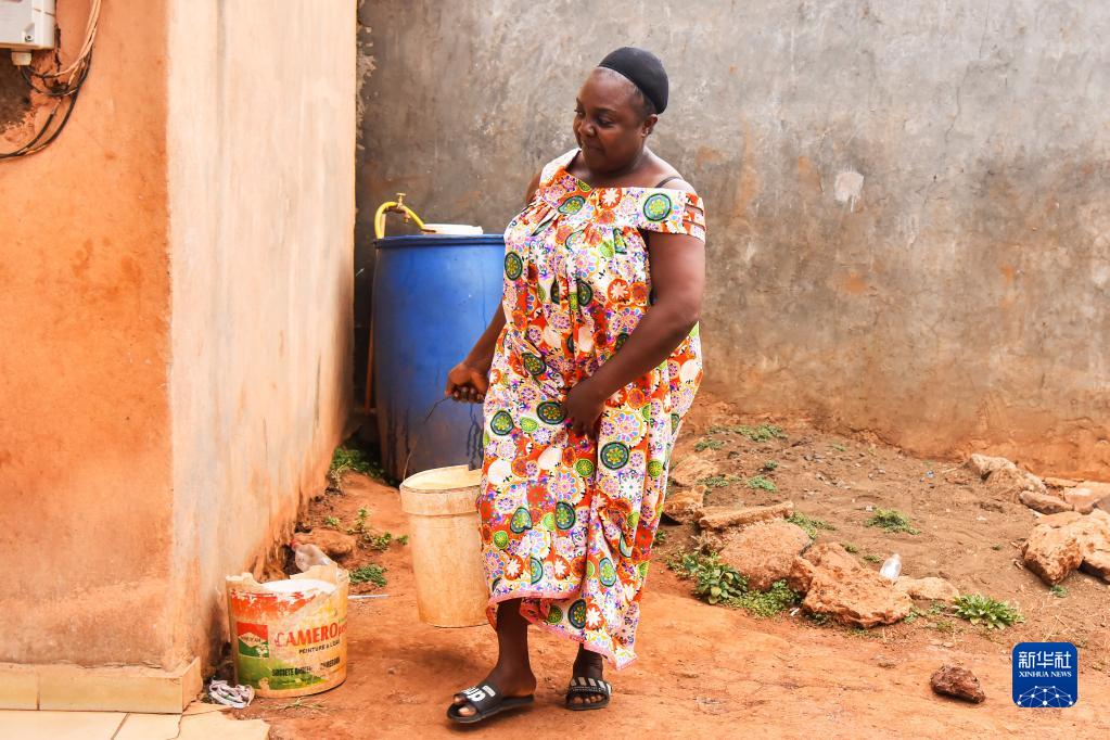 3月2日,在喀麦隆西部大区巴富萨姆,当地居民从水龙头接水后离开。