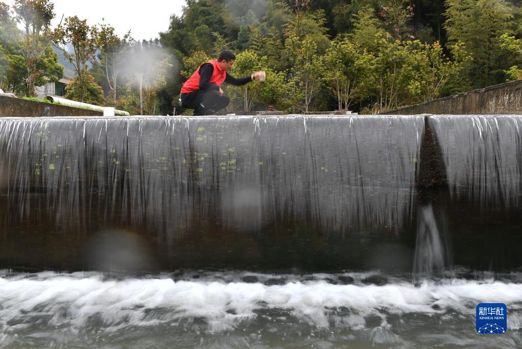 3月22日,衡山县岭坡乡灯山村“泉水瘦身鱼” 养殖基地工作人员在观测水质。