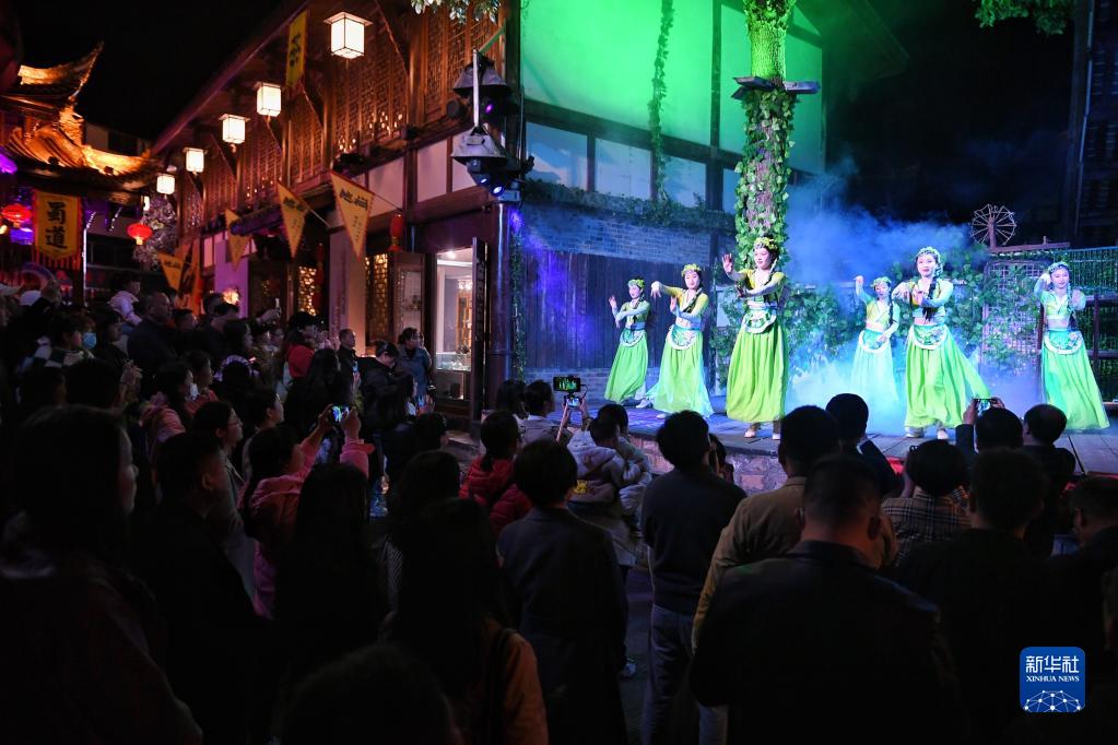 每当夜幕降临,四川省阆中市嘉陵江城区段灯光璀璨,大型民俗文化移动实景演出在此上演,这种“移步换景”的演出方式吸引众多游客。近年来,阆中古城为推动夜间经济发展,充分结合当地文化资源,推出《蜀道盛世》《客来阆中》等实景演出,增加游客夜游体验,带动当地文旅消费。