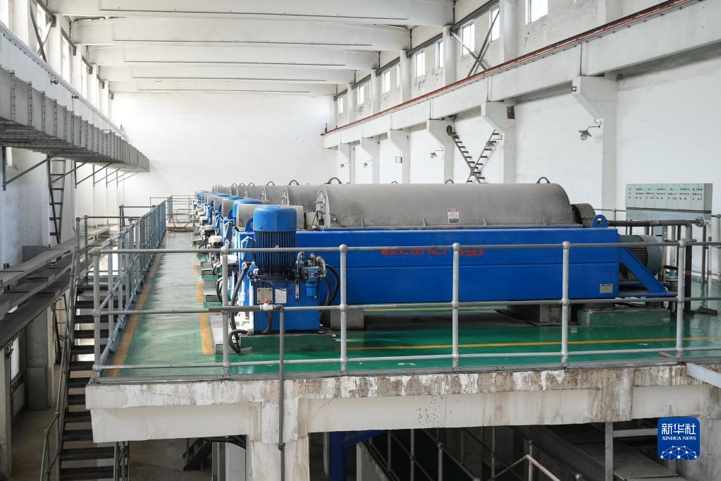 这是沈阳南部污水处理厂污泥处理区域的离心机,处理污水过程中产生的剩余污泥,先进入缓冲池,再进入离心机进行离心分离,随后外运处理(3月17日摄)。
