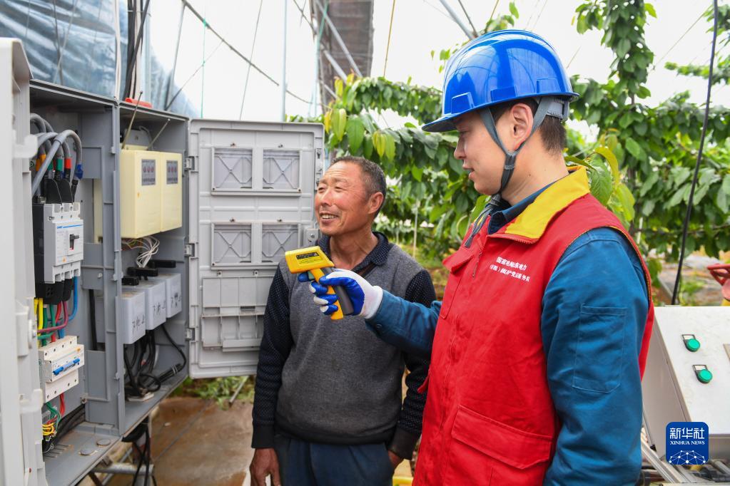3月22日,国网淄博供电公司沂源彩虹党员服务队为燕崖村果农齐立忠检修大棚供电设施。