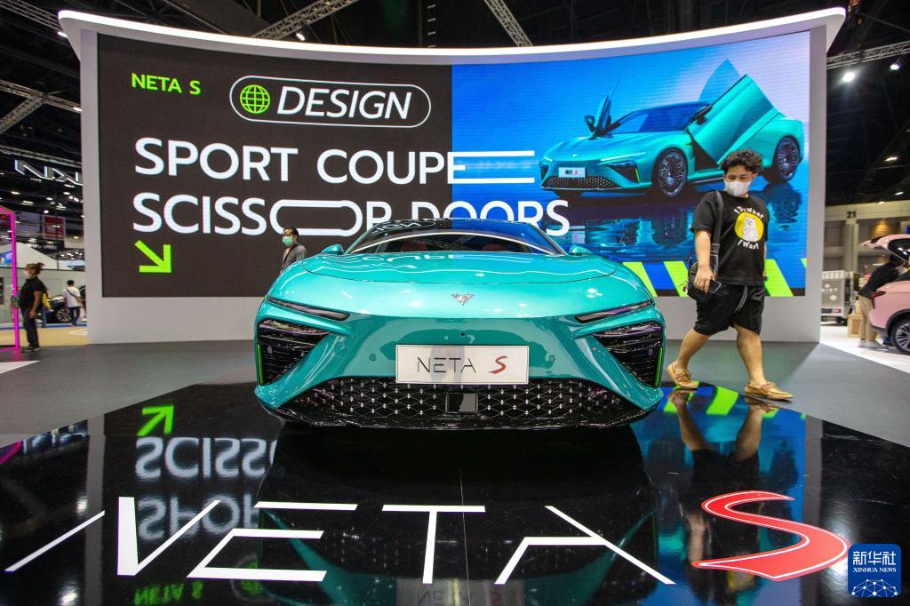3月22日,观众在泰国曼谷国际车展上参观哪吒S汽车。