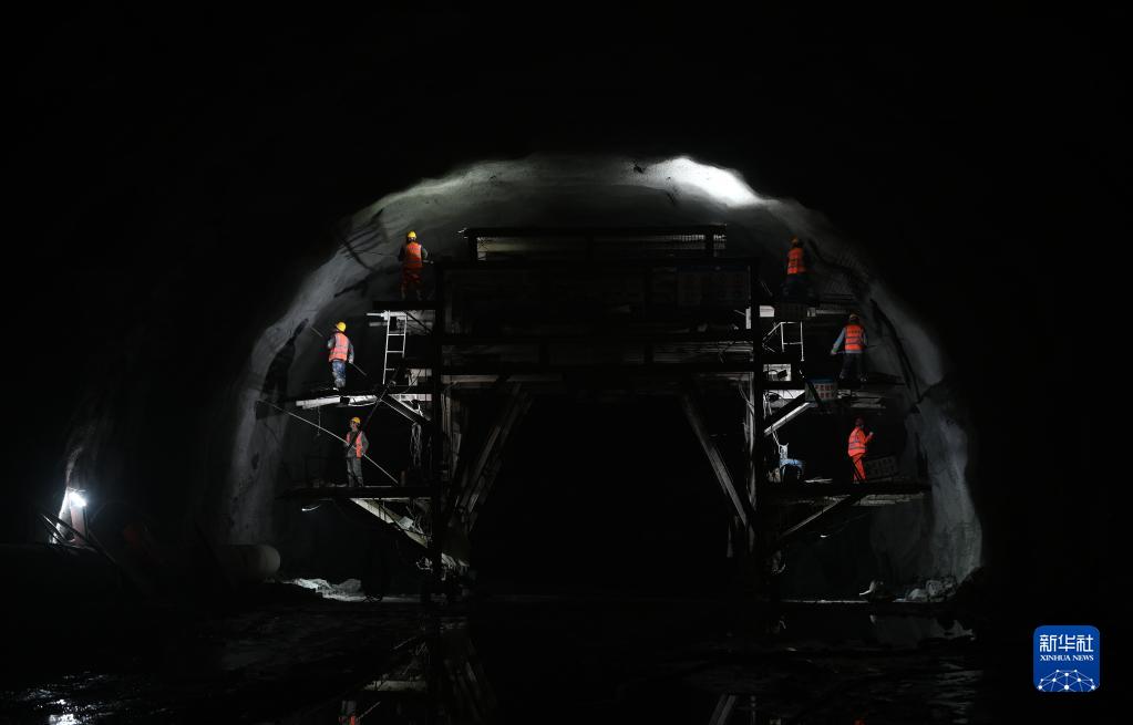 3月23日,工人在承平高速河北兴隆段的一处隧道内施工。