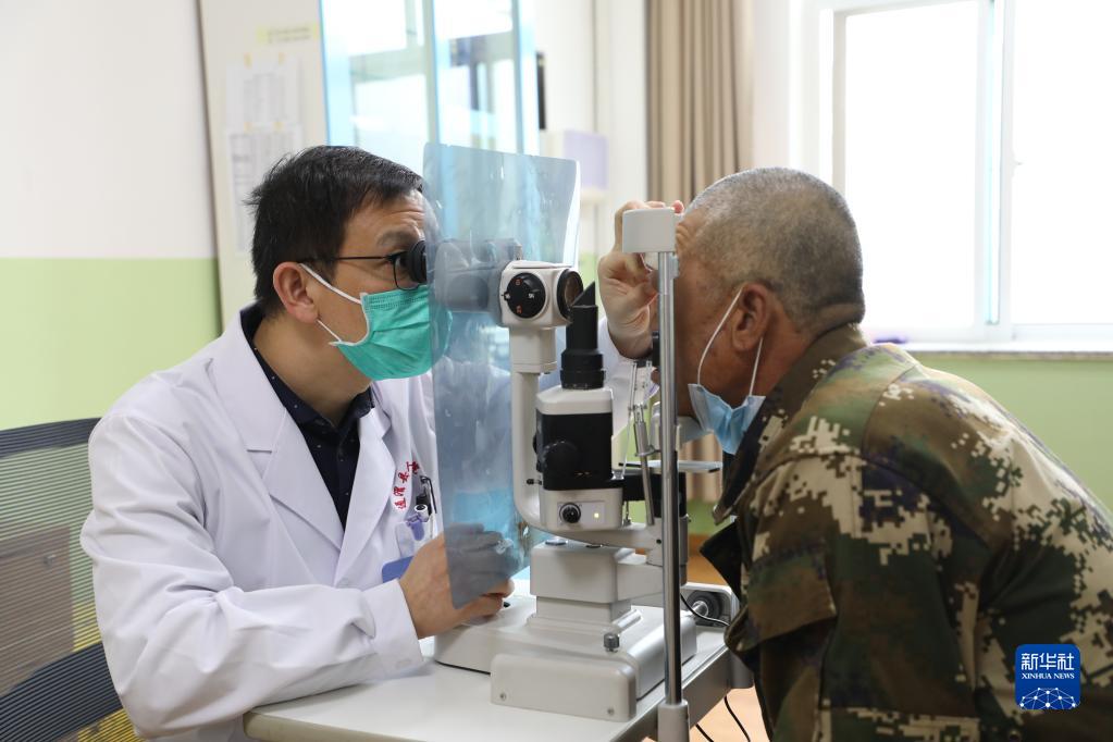 3月23日,在通渭县人民医院门诊楼,青岛市医疗“组团式”帮扶团队队长张杰为患者检查。