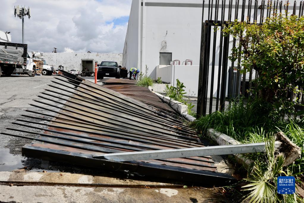 这是3月23日在美国加利福尼亚州蒙特贝洛市拍摄的受损围栏。