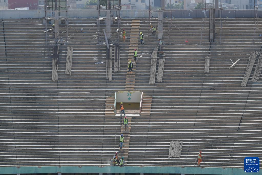 3月22日,工人在塞内加尔首都达喀尔的桑戈尔体育场施工。