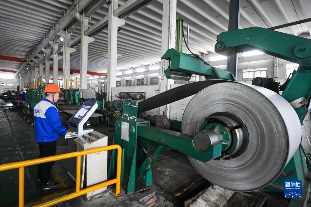 在位于嘉兴市的浙江德威不锈钢管业股份有限公司连续机组焊管车间内,产线技术员在操作MES(生产管理系统)(3月23日摄)。