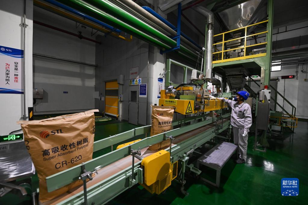 在卫星化学股份有限公司高新区嘉兴基地内,包装工通过自动包装系统进行产品包装(3月23日摄)。该公司先后荣获中国500强、中国制造业500强、国家制造业单项冠军示范企业等奖项,2022年获评单项冠军企业。