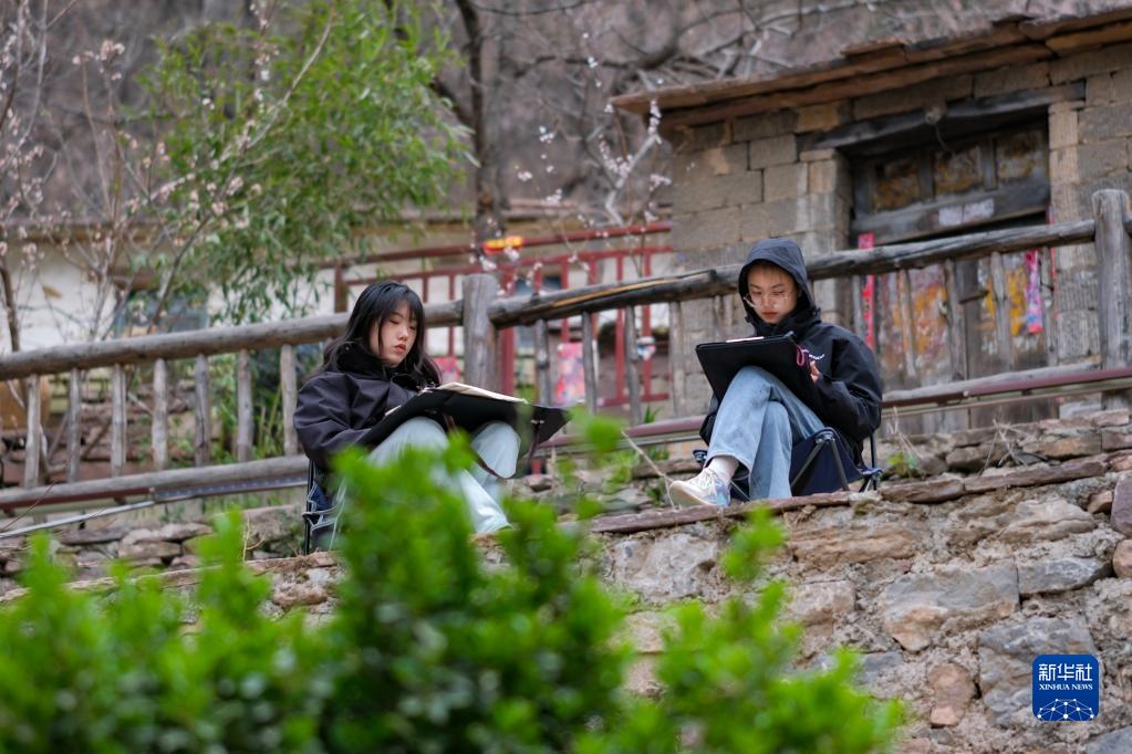 3月24日,来自郑州市信息技术学校的学生在高家台村写生。