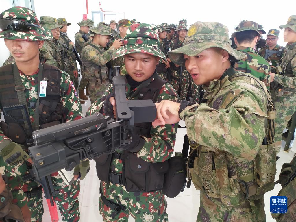 3月24日,在柬埔寨王家军某训练基地,中柬参演官兵开展装备操作训练,熟悉了解对方武器装备性能。