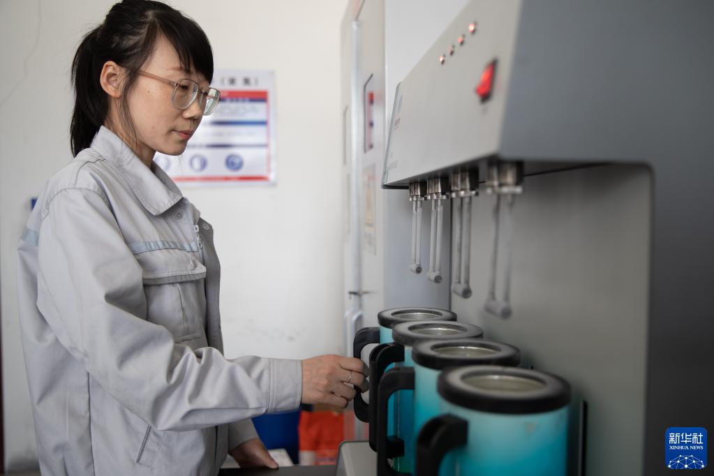 3月24日,在中建材黑龙江石墨新材料有限公司检验检测中心,工人在进行石墨检测作业。