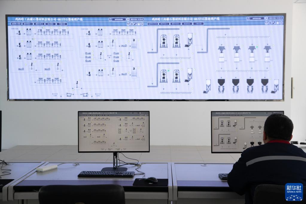 3月24日,在鸡西哈工高碳石墨材料有限公司自动化运维中心,工人在监测作业情况。