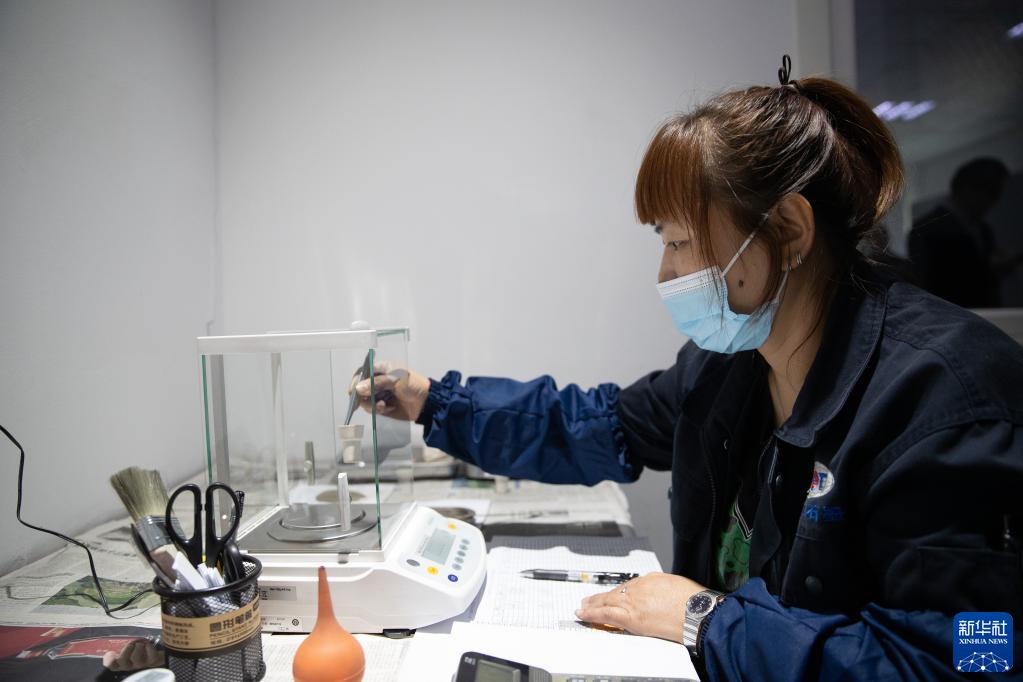 3月24日,在鸡西哈工高碳石墨材料有限公司检测室内,工人在进行石墨检测。