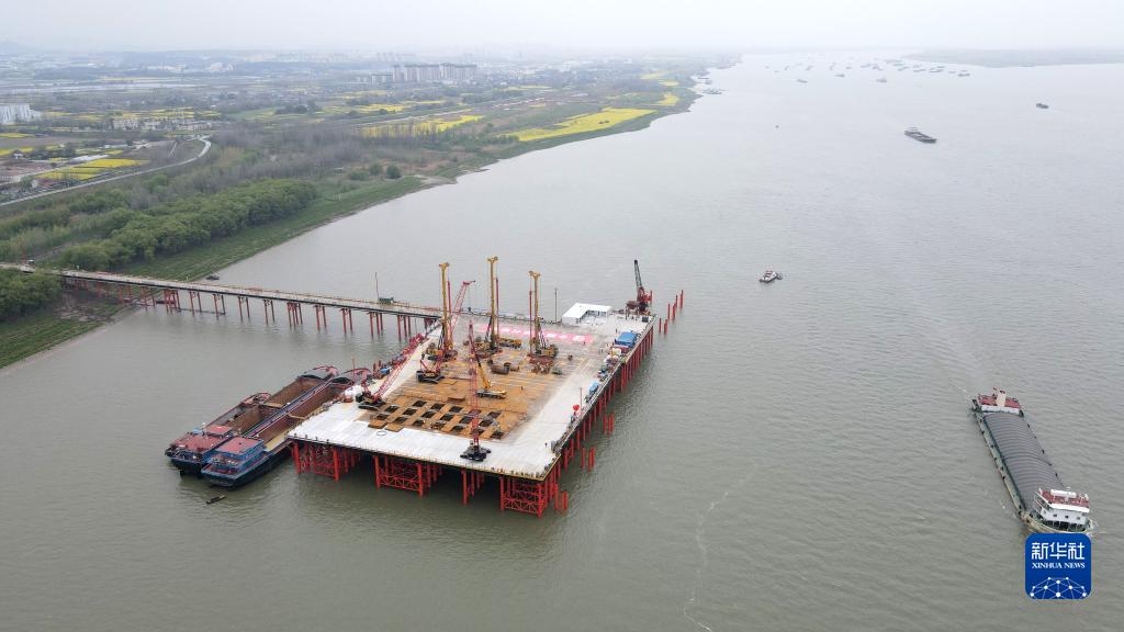 这是中铁大桥局池州长江公铁大桥首个主墩开钻现场(3月25日摄,无人机照片)。