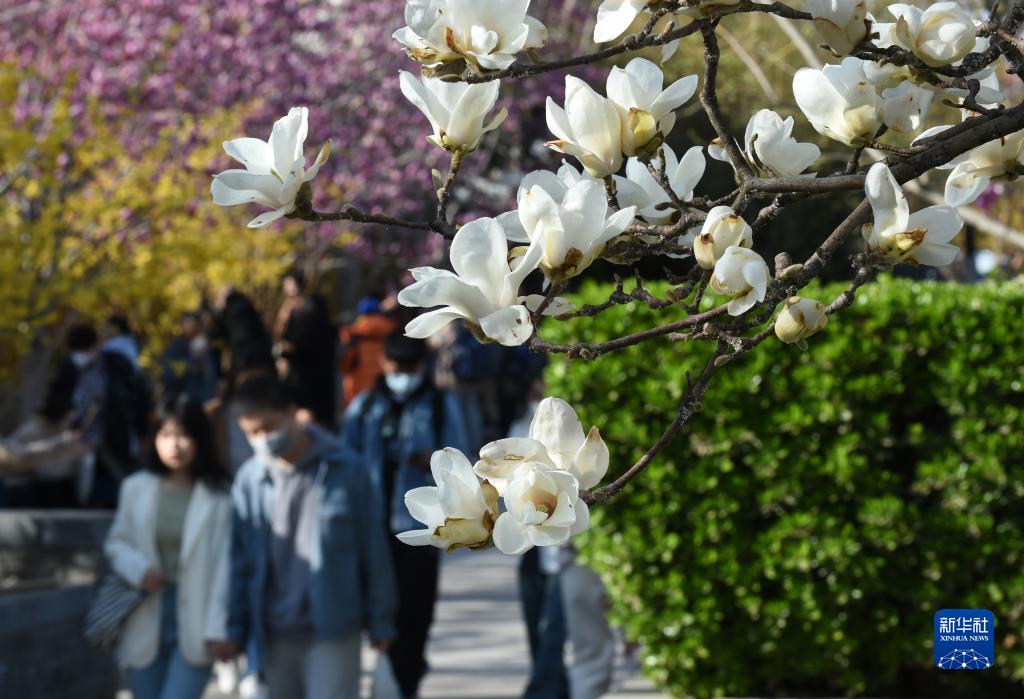 春回大地,北京各种花卉竞相绽放,人们纷纷走到户外,赏花踏青,乐享春光。