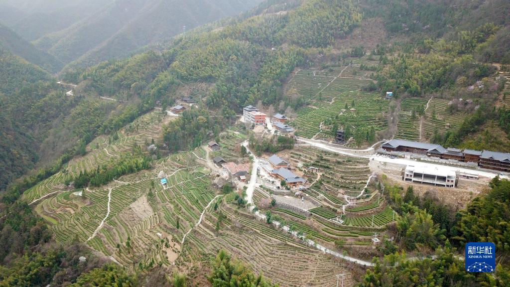 这是3月12日拍摄的新化县奉家镇渠江源村一处生态茶园(无人机照片)。