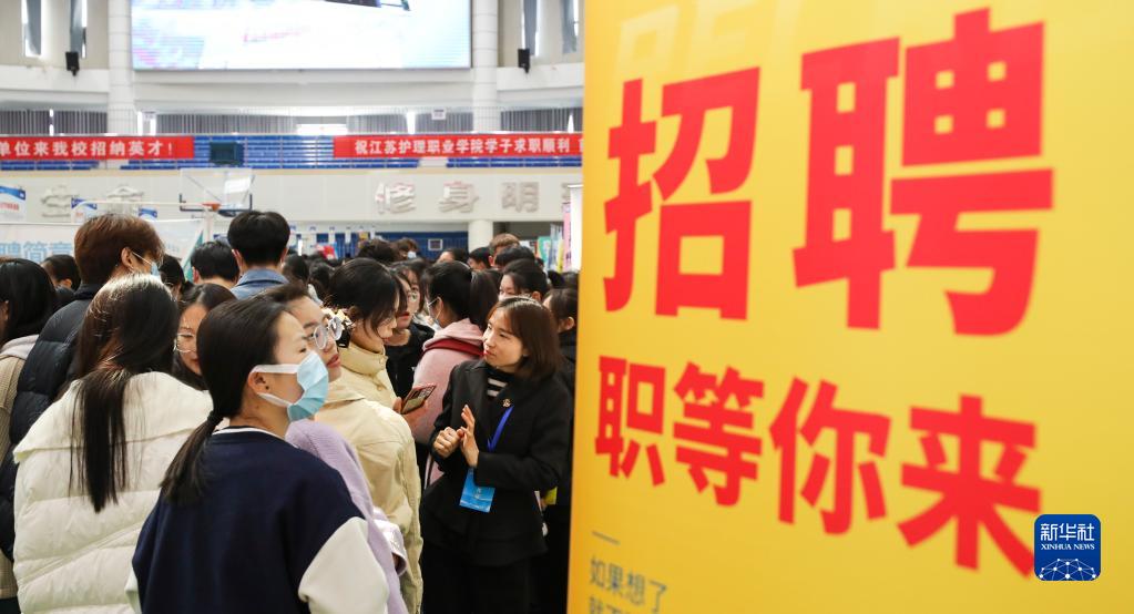 3月26日,在位于江苏淮安的江苏护理职业学院,大学生在2023年春季校园招聘会上挑选岗位。