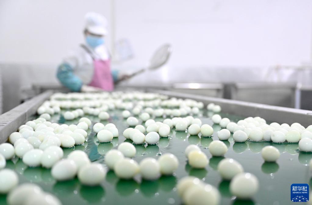 3月27日,在柳州市柳城县社冲乡柳州螺蛳粉原材料基地里,工人在鹌鹑蛋加工厂车间里忙碌。
