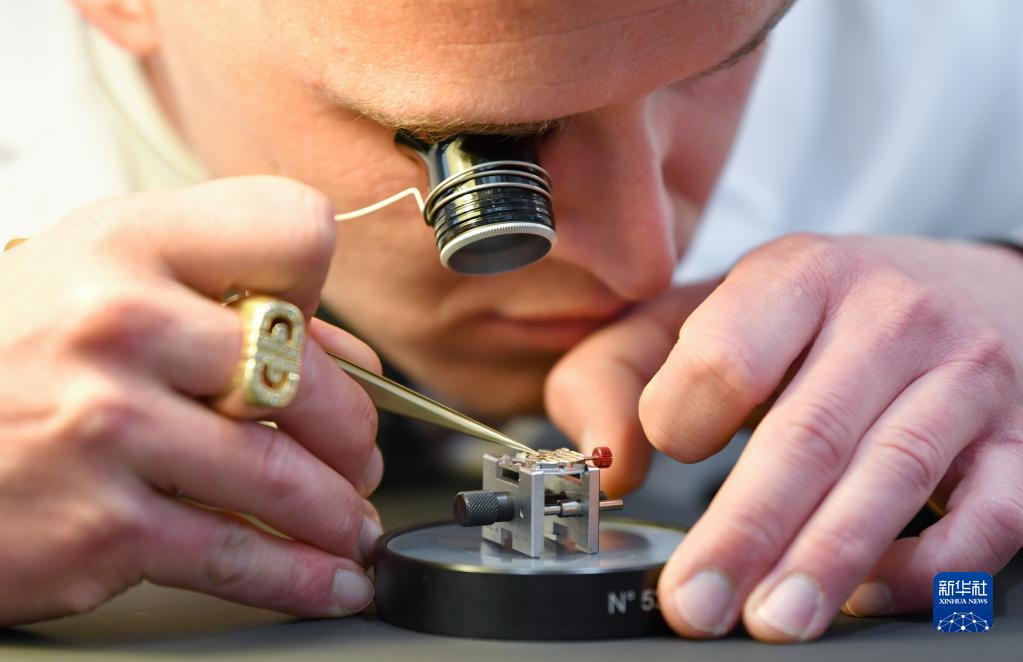 3月27日,在瑞士日内瓦,一名钟表匠在“钟表与奇迹”高级钟表展上展示技艺。