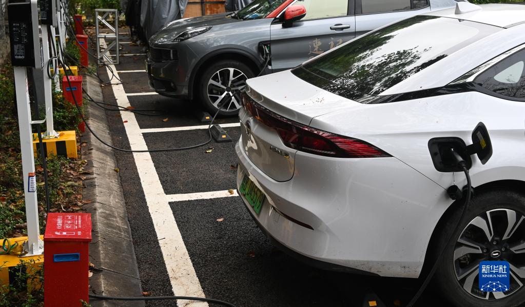 3月28日,新能源汽车在博鳌零碳示范区内充电。