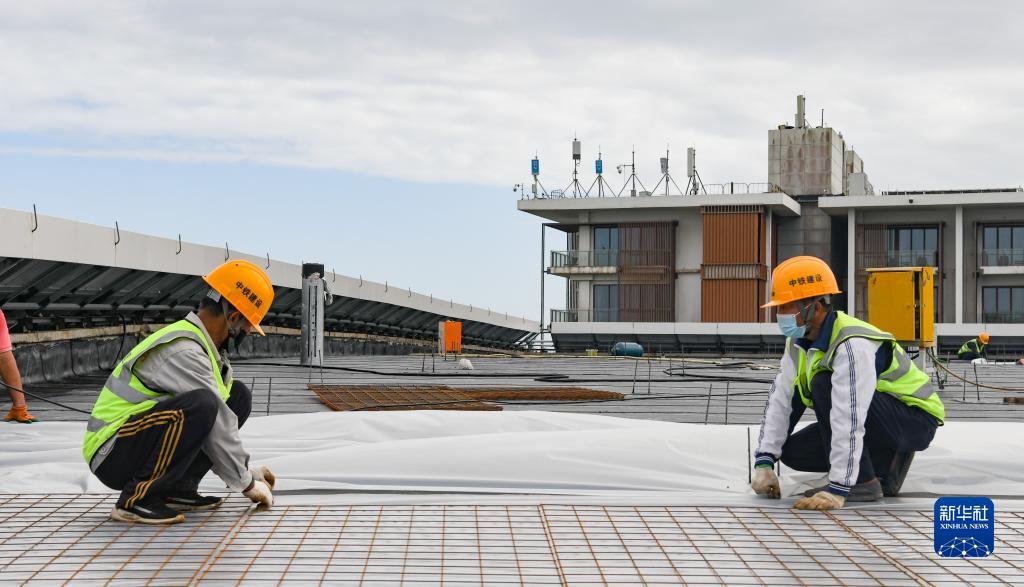 工人在博鳌零碳示范区建筑绿色化改造项目中施工(1月12日摄)。