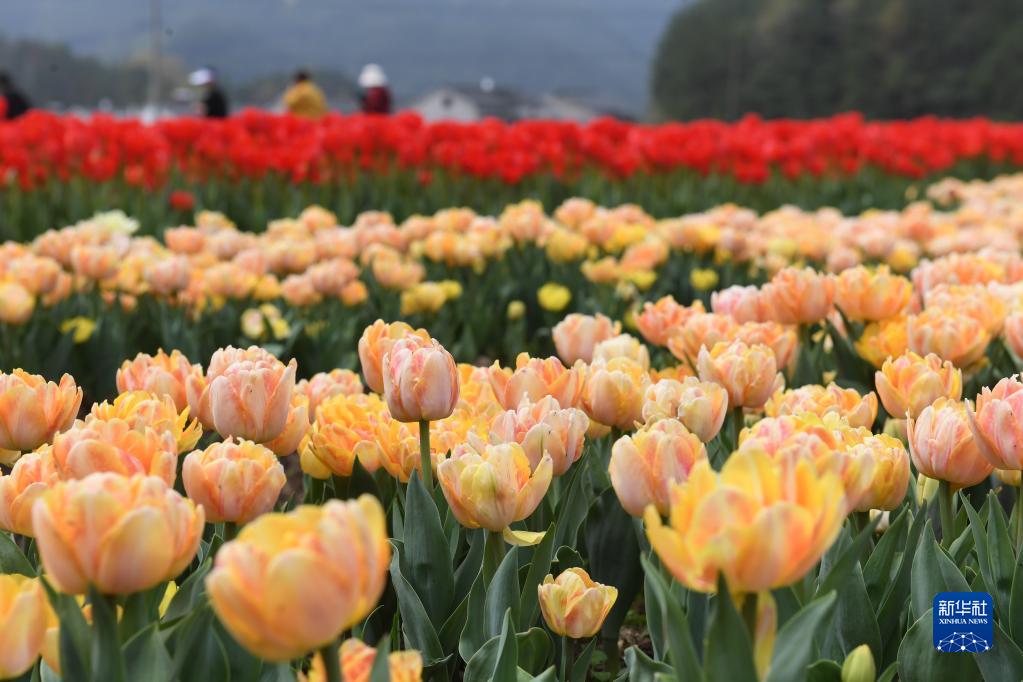 近日,浙江省金华市浦江县杭坪镇乌浆村100亩郁金香盛开,吸引不少游客前来观赏。这片闲置土地由回乡创业的乡贤开发,打造成花海,免费向游客开放,这里还提供鲜切花订购服务,帮助周边农户增收。