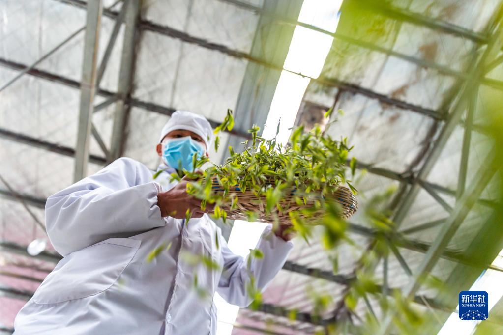 3月28日,工人在贵州省毕节市百里杜鹃管理区一茶叶加工厂制作明前茶。