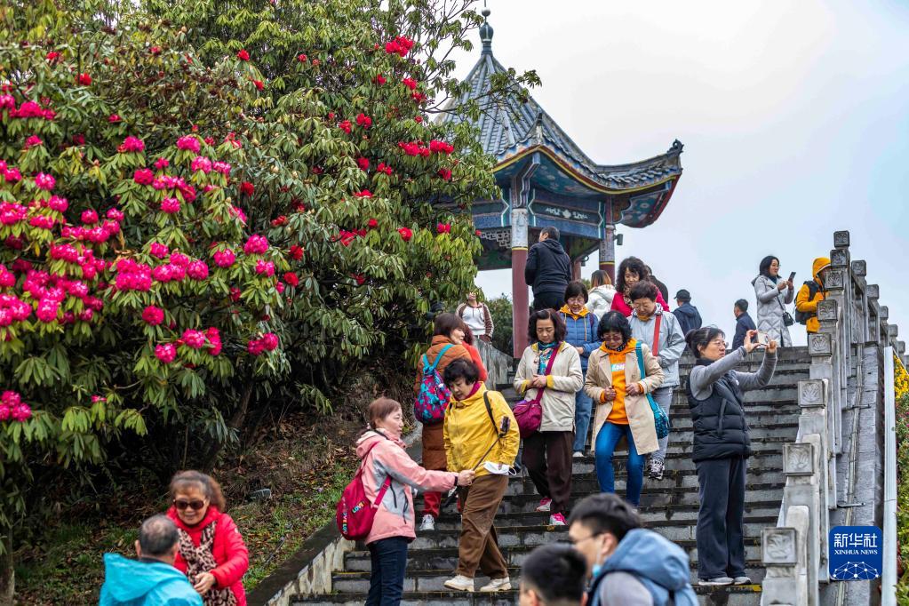 近日,随着气温逐渐升高,位于贵州省毕节市百里杜鹃管理区的天然野生杜鹃花次第盛开,逐渐进入盛花期。据了解,百里杜鹃林带绵延百里,故称“百里杜鹃”。