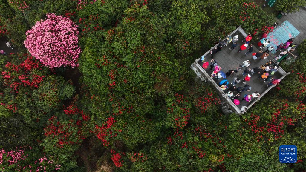 近日,随着气温逐渐升高,位于贵州省毕节市百里杜鹃管理区的天然野生杜鹃花次第盛开,逐渐进入盛花期。据了解,百里杜鹃林带绵延百里,故称“百里杜鹃”。