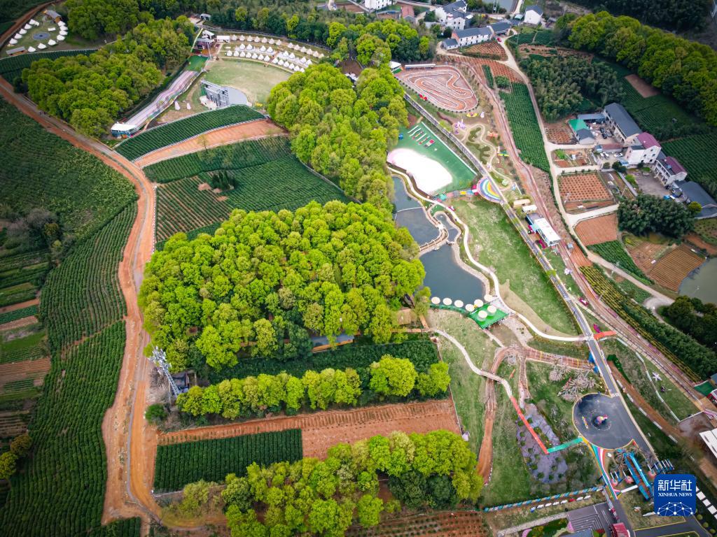 这是3月29日拍摄的诸暨市枫桥镇阳春村阳春山月游乐度假村(无人机照片)。当地通过闲置荒山土地流转发展乡村旅游,帮助当地村民和村集体增收。
