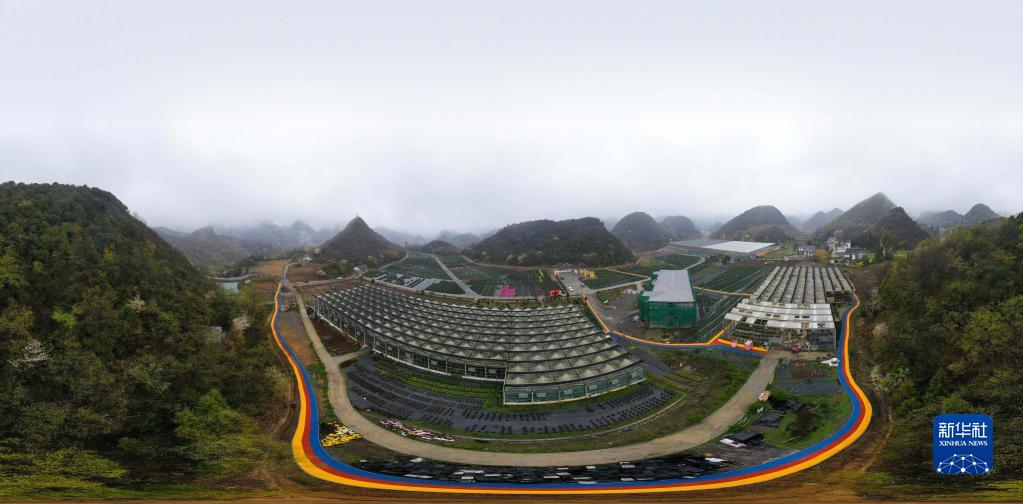 3月28日拍摄的贵州省毕节市百里杜鹃管理区汇境花卉基地(无人机全景照片)。