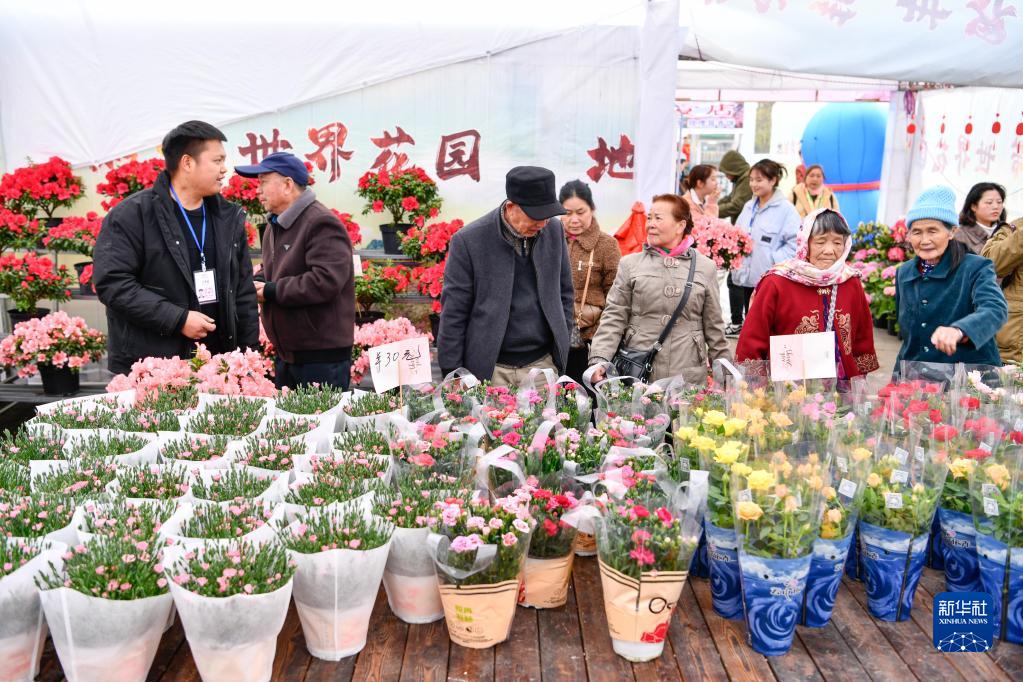 3月28日,游客在贵州省毕节市百里杜鹃管理区花卉展示点选购花卉。