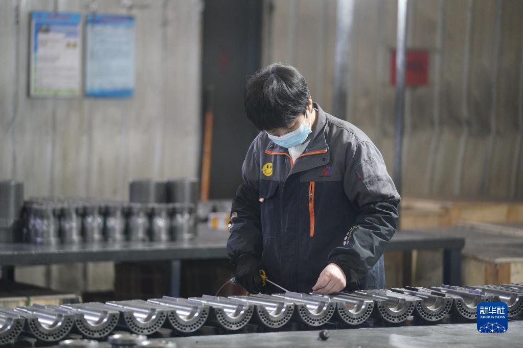 3月29日,沧州渤海新区黄骅市安迪模具有限公司工人在生产车间清洁模具产品。