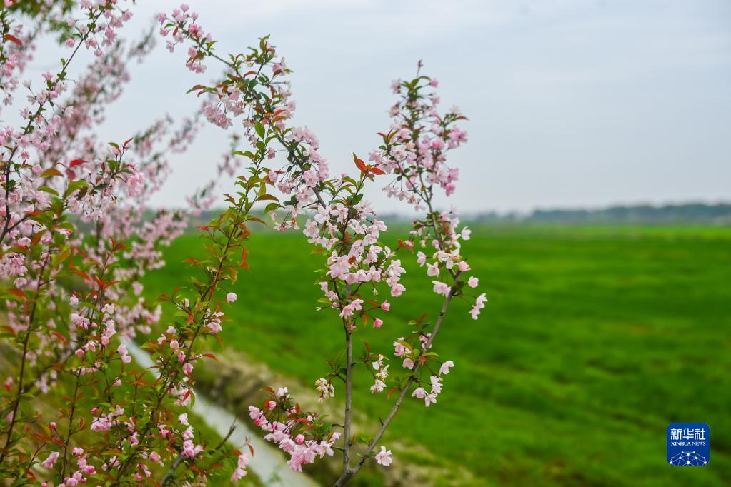 3月29日,浙江省湖州市东林镇东华村经过土地综合整治后建成的高标准农田边春花绽放。