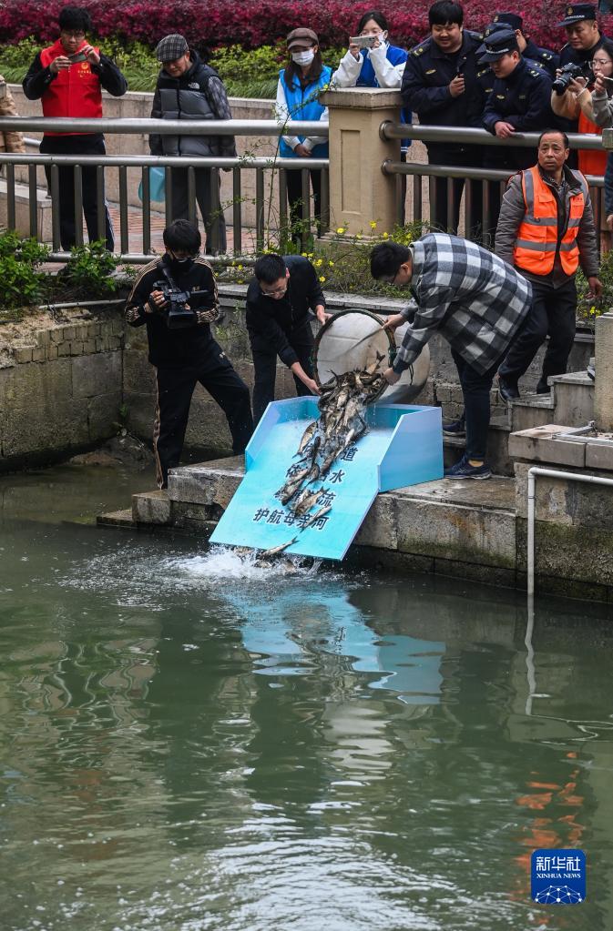当日,浙江省湖州市吴兴区龙泉街道举行“增殖放流共护母亲河”活动,提升城区河道水质、普及生态环保意识。近年来,龙泉街道大力推进城市小区水体精细化治理,努力打造“水清、流畅、岸绿、堤固、景美、人和”的生态环境。