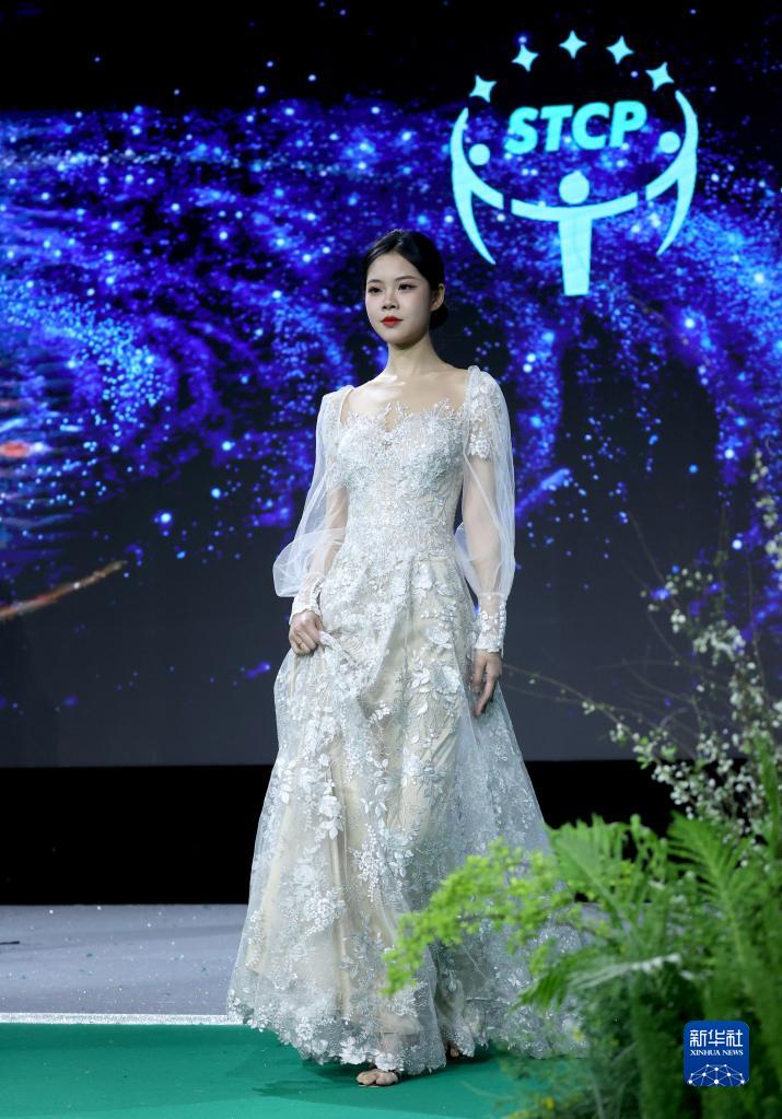 3月29日,模特在“绿色纤维制品可信平台”发布会上展示可循环再利用的时装。