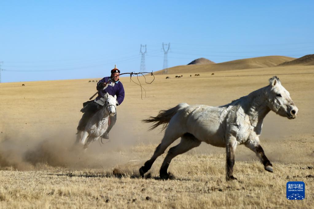 3月29日,锡林郭勒盟西乌珠穆沁旗的牧民在草原上套马。