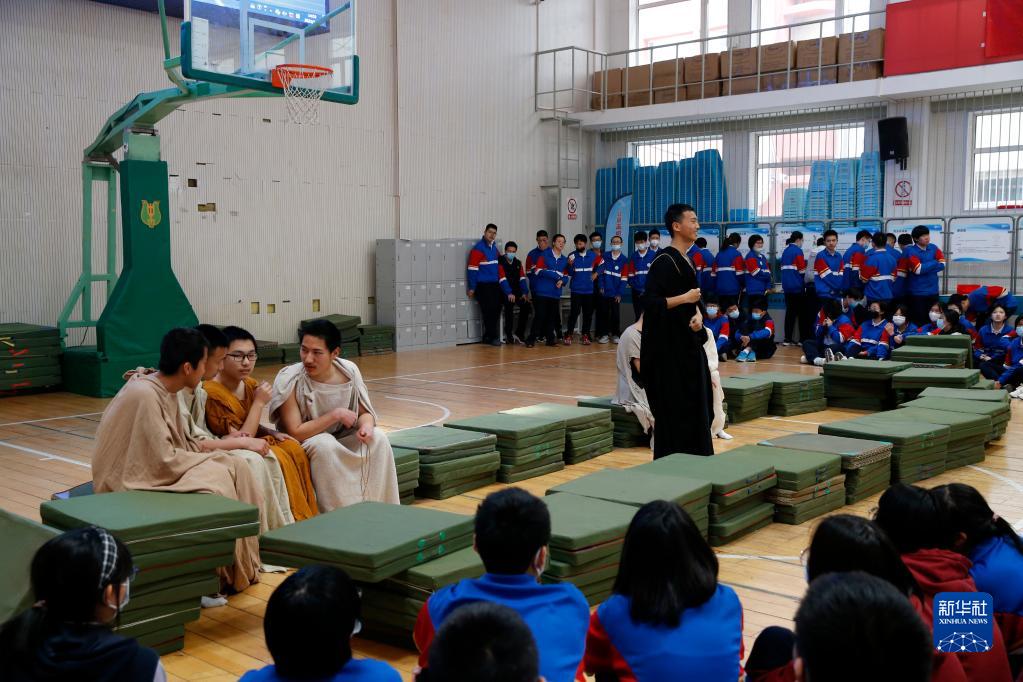 3月29日,中学生在展示根据数学历史故事创编的话剧。